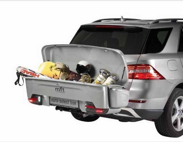 Die euro select Box mit einem Fassungsvermögen von mindestens 300 Litern begleitet Sie bei allen Aktivitäten die auch etwas mehr Stauraum benötigen, wie z. B. bei Nutzung von Ski. In der Grundausstattung kann die Box z. B. mit Ski bis zu 150cm Länge beladen werden- (als Zubehör sind Erweiterungen bis zu einer Ski Länge von ca. 185cm erhältlich). Lieferumfang besteht aus dem kompletten Heckträger für die Anhängerkupplung incl. Heckbox, incl. Beleuchtung mit 13poligem Stecker, incl. EG-Betriebserlaubnis (eintragungsfrei).