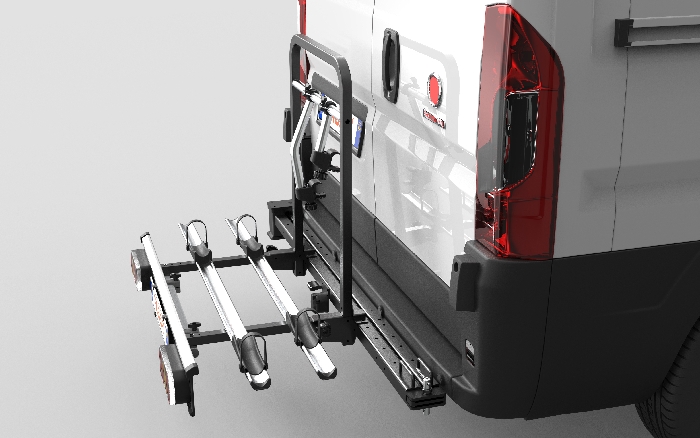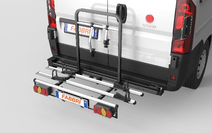 Der Fabbri SESAMO ist ein robuster schwenkbarer Fahrradträger aus Aluminium, speziell entwickelt für den Fiat Ducato X250 (auch ausgebaute Kastenwagen / Camper) mit doppelflügeligen Hecktüren. Dank der drehbaren Halterung bleibt die Heckklappe auch mit montierten Fahrrädern voll zugänglich. Die Montage am Fahrzeugrahmen sorgt für maximale Stabilität und eine Nutzlast bis zu 75 kg. Der Träger ist platzsparend klappbar und eignet sich für 3 Fahrräder oder E-Bikes (20'' bis 29''). Mit einer optional dazubestellbaren Zusatzschiene kann ebenfalls ein drittes Fahrrad transportiert werden. Ebenfalls optional erhältlich sind Spannkabel für übergroße Trail-Bikes. Die 135 cm langen Aluminiumschienen bieten Platz für Fahrräder mit bis zu 127 cm Radstand und Reifen bis zu 2,6'' (6,5 cm). Kratzfeste Radstopper sorgen für sicheren Halt. Die 360°-drehbaren Aluminiumarme mit Gummischutz ermöglichen eine flexible und schonende Befestigung am Rahmen von 2,4 cm bis 6,5 cm. Der Träger verfügt über eine EG-Homologation und muss nicht in die Fahrzeugpapiere eingetragen werden. Lieferung komplett inkl. Träger, fahrzeugspezifische Fahrzeuganbindung (Aufnahmeelemente) sowie Erweiterungssatz für das dritte Fahrrad. Rufen Sie uns an, wir beraten Sie gerne.