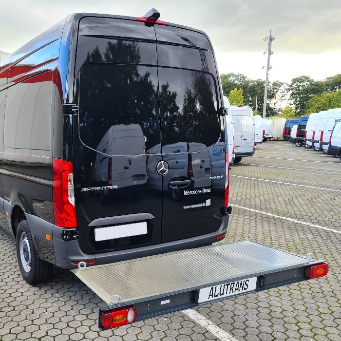 Plattformträger für den Mercedes Sprinter 3er Bj. 2018- mit AHK. Die Aluminiumplattform, kpl. incl. dem nötigen Grundträger KALUX und Fahrzeugadapter ist die ideale Lösung für alle, die Lasten von max. 200kg (je nach freier Hinterachslast) mit Ihrem Wohnmobil mitnehmen wollen. Grundträger, Plattform und Lichtleiste in Aluminium eloxiert. Abmessungen der Plattform ca. 1800x 400 mm: Gewicht des Trägers ohne Aufnahmeelemente ca. 37 kg. Lieferumfang: Kpl. Heckträger mit d. Plattform, incl. Beleuchtung, Fahrzeuganbindung (Aufnahmeelemente-Standard für dieses Kastenfahrzeug somit kann dieser Heckträger auch sehr schnell und einfach bei Nichtbedarf abgenommen werden). TüV-eintragungsfrei. Die Lichtleiste und Plattform kann optisch abweichen, da diese stets in aktuellster Ausführung geliefert werden. Gern beraten wir Sie. Bitte beachten Sie, nicht jede Anhängerkupplung ist kompatibel- wir bitten Sie, uns zur Bestellung, alle Angaben lt. Typenschild zu übermitteln. Zubehör auf Wunsch separat zu bestellen.